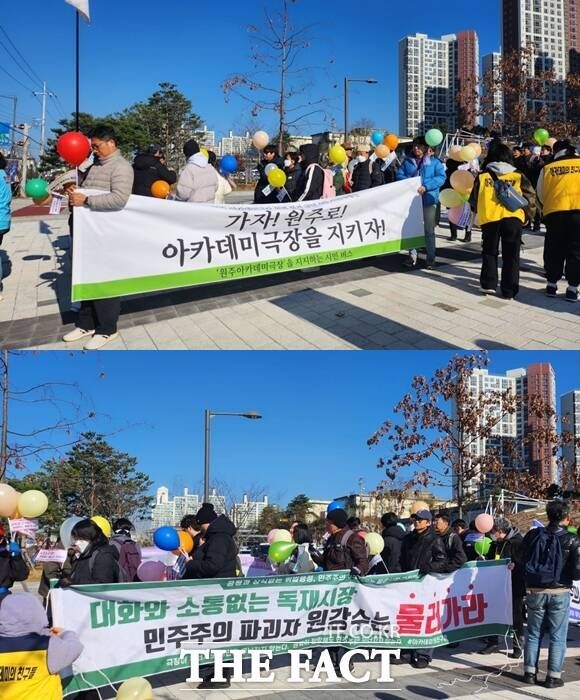 [더팩트|원주=박지윤 기자] 국내에서 가장 오래된 대형 단관극장으로 남다른 의미를 지닌 원주 아카데미극장이 무너졌다. 하지만 시민들은 여전히 함께 목소리를 내고 있다. 이미 철거된 극장을 되살릴 수 없지만 이 사태가 당연하게 여겨져서도, 두 번 다시 같은 일이 일어나서도 안 되기 때문이다.