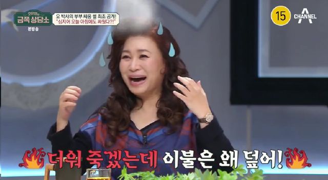 오은영은 "아침에 일어나는데 (남편이) 왜 일어나면서 제 발등을 발톱으로 긁나. 아프다고 하니 '미안하다'며 이불을 덮어줬다"고 당시를 회상했다. 이어 그는 "난 지금 갱년기라서 덥다. 더워 죽겠는데 이불을 왜 덮냐. 이런 일로 싸운다. 여기 있는 사람들도 다 싸울 것"이라고 고백했다.