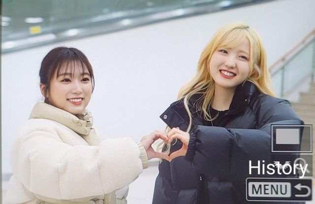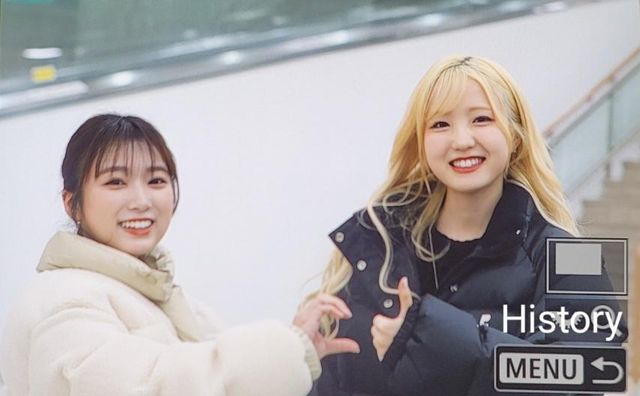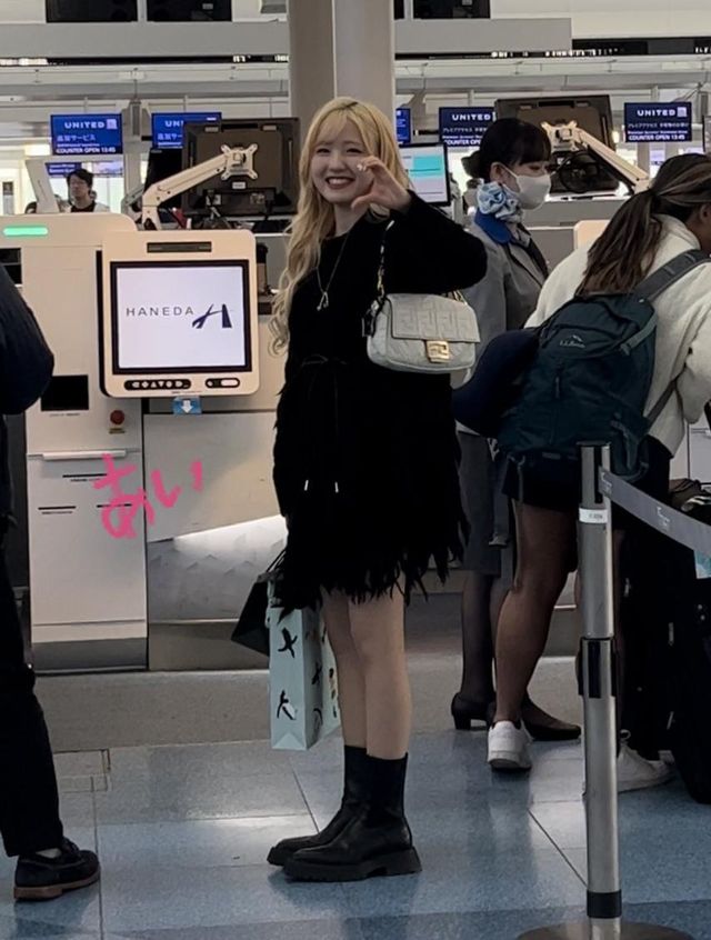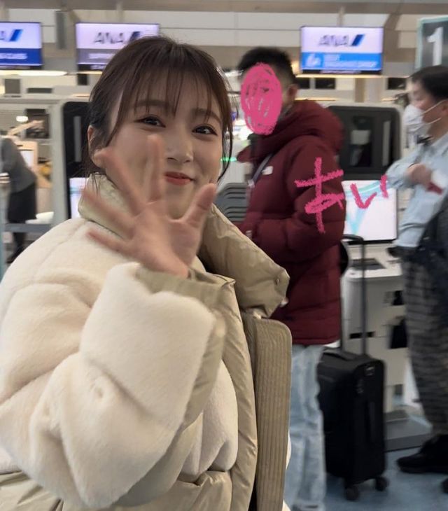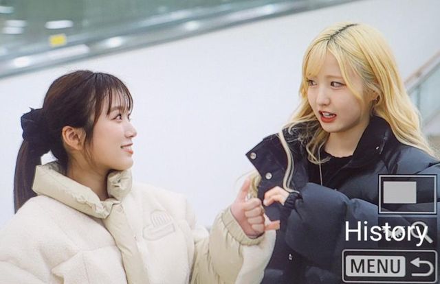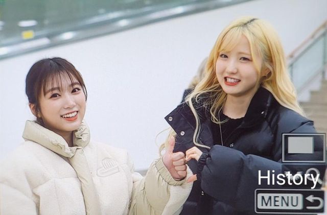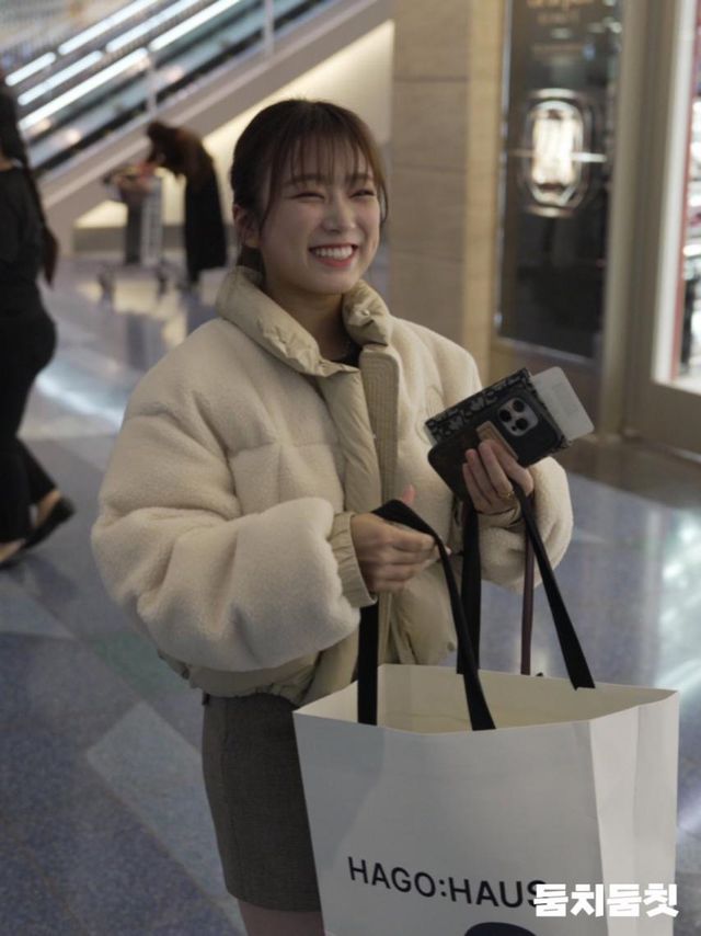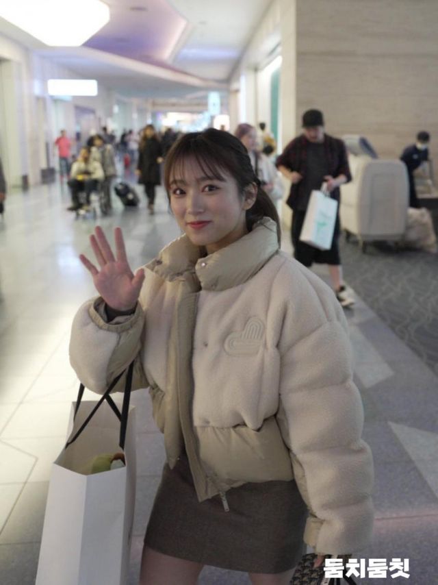 갈색 시스루 폴라티 + 오프숄더 패딩 분위기 쩌는 에스파 카리나