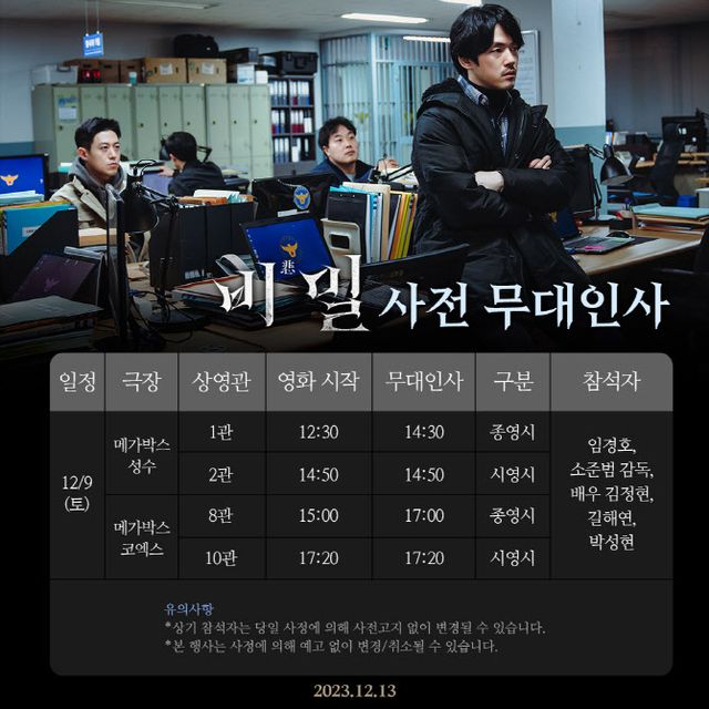 개봉 전부터 뜨거운 열정으로 무대인사에 나선 ‘비밀’은 강력한 몰입감과 탄탄한 서사의 웰메이드 추적 스릴러로 오는 12월 13일 개봉한다.