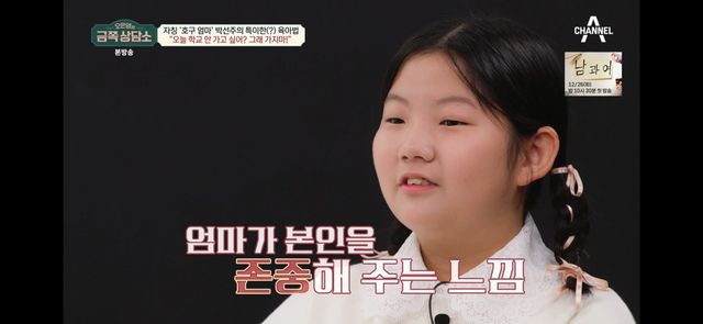 이에 딸 강솔에이미는 “학교 가기 싫다고 하면 엄마는 그냥 안 가게 해준다. 친구들은 유튜브 보는 시간이 제한되어 있는데 저희 엄마는 딱히 그런 게 없다”며 “그냥 엄마가 너무 좋다. 무엇이든 이해해 주는 엄마가 좋고 엄마가 저를 존중해 주는 느낌이다”며 엄마에 대한 애정을 드러냈다.