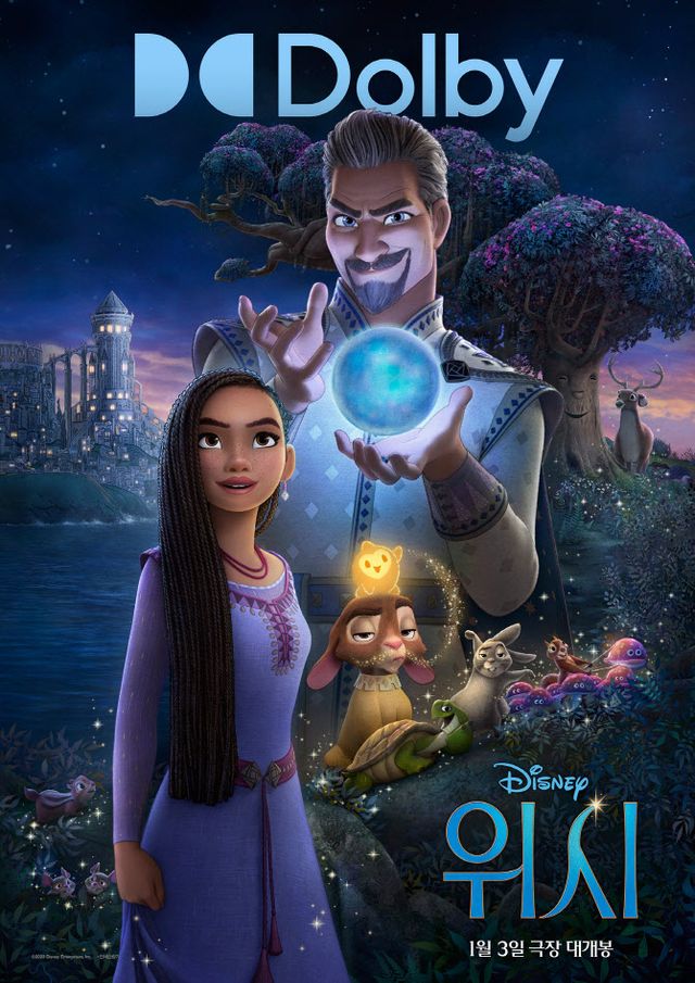 이와 함께 공개된 ‘위시’의 돌비 포스터에는 디즈니가 최고의 기술력으로 완성시킨 환상적인 비주얼은 물론 마치 동화책을 보는 듯한 아름다운 색감과 ‘로사스 왕국’의 황홀한 전경, 그리고 작품을 완성시킨 다채로운 매력의 주인공 ‘아샤’, ‘매그니피코 왕’, ‘발렌티노’, ‘별’의 모습을 한눈에 엿볼 수 있어 기대감을 더한다. 소원 구슬을 손에 쥔 채 묘한 표정으로 웃고 있는 ‘매그니피코 왕’의 비밀은 무엇일지, 그의 어두운 이면에 맞설 ‘아샤’와 귀여운 친구들의 여정은 무엇일지 궁금증을 증폭시킨다. 특히 돌비 시네마 포맷은 ‘위시’의 아름다운 비주얼과 환상적인 OST를 더욱 생동감넘치게 즐길 수 있는 포맷으로 좋은 좌석 선점을 위한 치열한 티켓 전쟁이 펼쳐지고 있다.