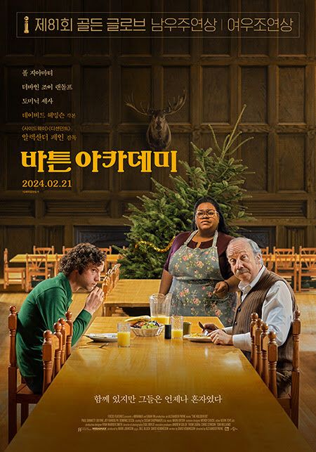 [이데일리 스타in 김보영 기자] 골든 글로브 및 아카데미 수상작 ‘사이드웨이’의 알렉산더 페인 감독과 폴 지아마티의 재회로 기대를 모으고 있는 영화 ‘바튼 아카데미’가 제81회 골든 글로브 남우주연상 및 여우조연상을 수상하는 쾌거를 달성했다. 이와 함께 오는 2월 21일 국내 개봉을 확정하고 메인 포스터를 공개했다.