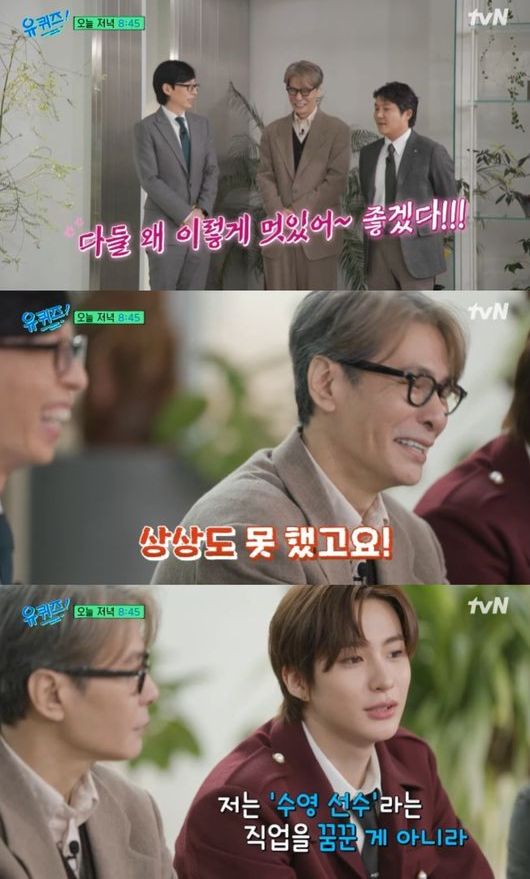 윤상은 '아이돌의 아빠가 될 거라고 생각해보셨냐'는 질문에 "상상도 못했다"고 했다. 그는 "음악을 어릴 때부터 좋아했던 건 맞는데 아이돌은 또 다른 길이지 않나"라며 "원래 수영을 10년 정도 했다. 하다 보니까 (미국) 또래 중에 꽤 좋은 성적이 나와서 그래서 10년이라는 시간 동안"이라고 했다.