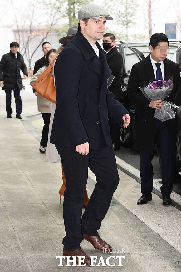 이날 입국한 헨리 카빌은 브라이스 달라스 하워드, 샘 록웰과 함께 18일, 19일 양일간 서울에서 열리는 '아가일' 내한 행사에 참여한다.