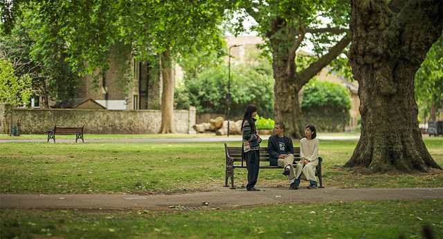 다만 호림이 보는 것은 자신이 아니라 낯선 여자다. 연인의 시선 안에 담긴 여자는 한가로이 창밖을 보거나 고요히 잠들어 있다. 분명 사랑의 시간이다. 영화의 무대는 런던. <이어지는 땅>은 모종의 일상을 제쳐두고 런던으로 유학을 떠나온 호림이 캠코더의 주인을 찾아가는 이야기가 될까? 관음의 흥분이나 미스터리의 긴장이 들어설 법한 장면인데 정작 호림은 치솟는 당혹감을 참을 수 없는 표정으로 캠코더의 화면을 덮어버린다. 곧 호림이 공원 벤치에서 언젠가 알던 남자와 재회하는 우연이 벌어진다. 두 사람 사이에 흐르는 긴장이 옛 연인의 그것인데다 동환의 새 애인 경서가 두 사람의 등 뒷편에서 공원의 들판을 천천히 가로질러오자 나는 움찔하고 말았다. 경서의 동선이 Z축의 거리를 점점 좁혀오는 시간이 곧 호림이 상실의 자각과 마주하기까지의 지연처럼 느껴졌다. 이어서 캠코더 속에 존재했던 여자 이원(공민정)이 영화의 화면 안으로 천천히 걸어나온다. 옛 애인과 캠코더 속 여자를 만나는 하루, 어색한 네 남녀의 저녁식사. 이 영화에서 시제를 따져야 한다면 현재로 부를 만한 순간은 이것이 전부다.