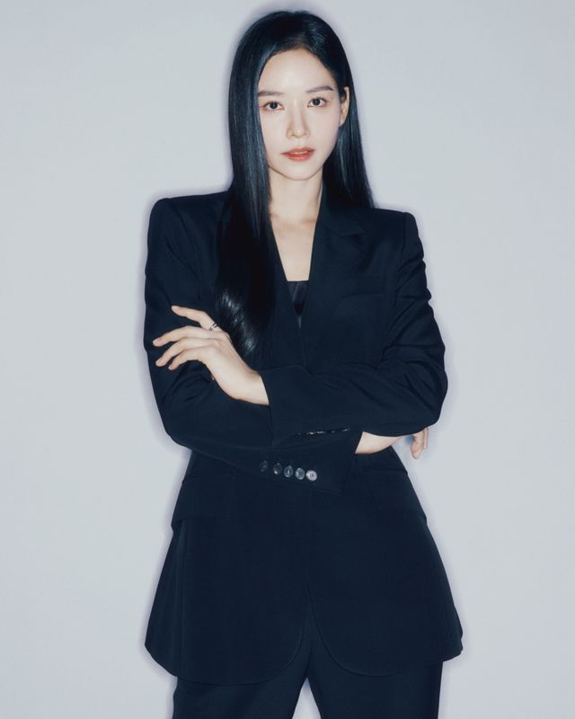배우 안지혜가 올 블랙 수트 셋업 패션을 선보였다.