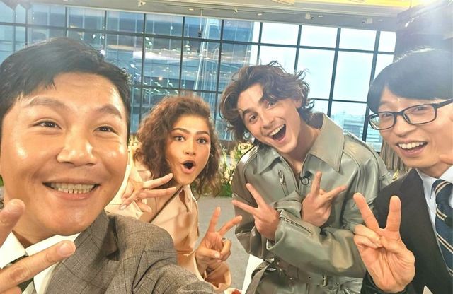21일 ‘유퀴즈’ 측은 공식 소셜네트워크서비스에 진행자 방송인 유재석, 조세호와 티모시 샬라메, 젠더이아 넷이 함께 찍은 사진을 게시했다. 네 사람은 카메라를 향해 개구장이 같은 모습으로 웃고 있어 관심을 모았다. 이와 함께 “티모시 샬라메, 젠더이아 자기님 유퀴즈 출몰”이라고 덧붙였다.