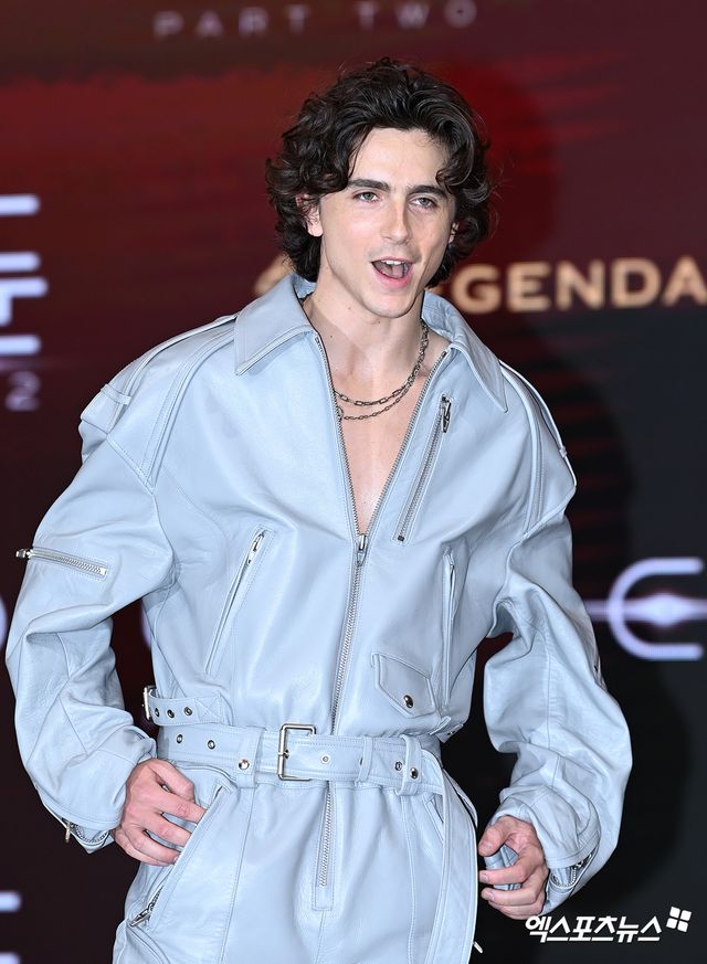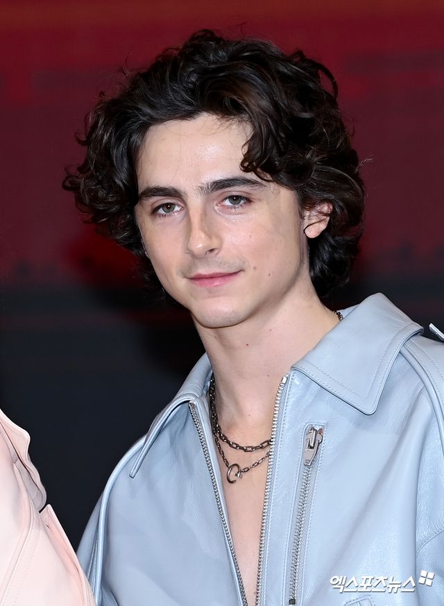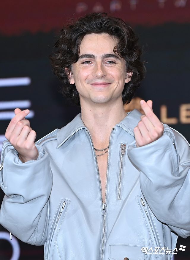 이날 내한 행사에 참석한 배우 티모시 샬라메가 포토타임을 갖고 있다.