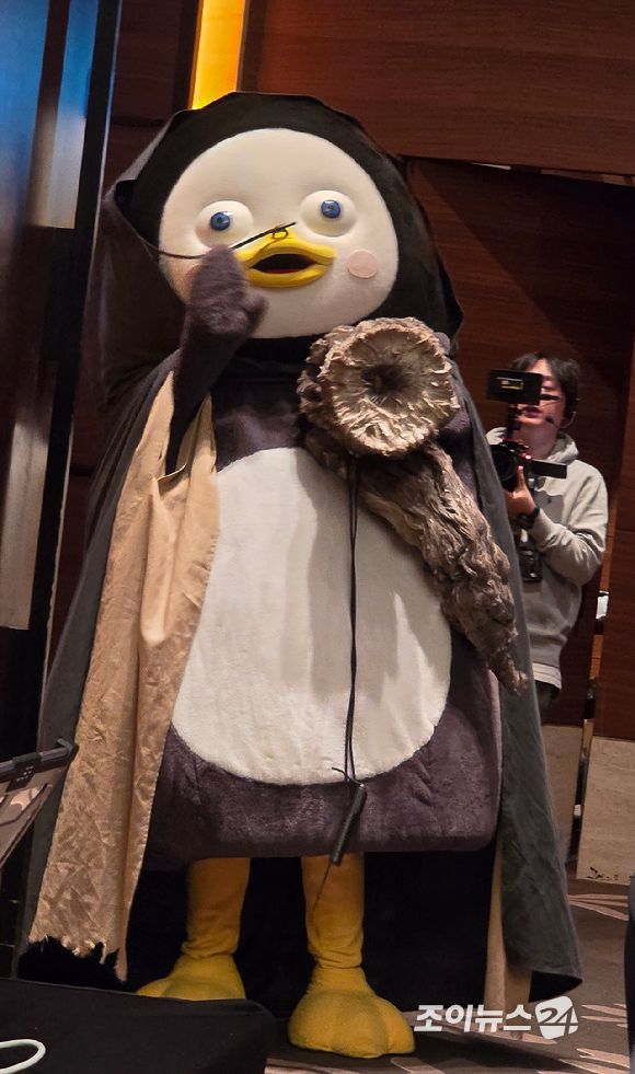 컨퍼런스 후 EBS 인기 캐릭터 펭수가 행사장을 찾아 눈길을 모았다. 펭수는 티모시 샬라메를 만나 인터뷰를 진행하는 것으로 알려져 화제가 됐던 상황. 펭수는 인터뷰 진행 전 기자들에게 인사를 건네고 "새해 복 많이 받으세요"라며 큰절을 해 웃음을 안겼다. 펭수와 티모시 샬라메가 어떤 대화를 나눌지 기대가 쏠린다.