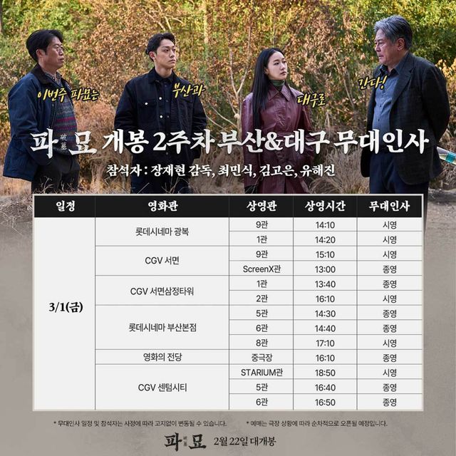 영화 '파묘' 무대인사 1주차 일정 / helloactor