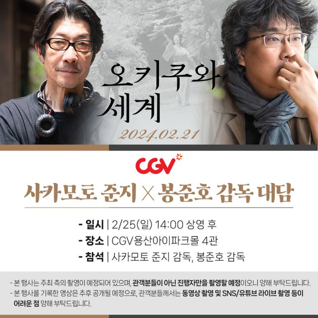 ‘어둠의 아이들’(2008) 국내 개봉 당시 함께 관객들을 만났던 때로부터 14년 만의 재회로, 예매 오픈 즉시 초고속 매진을 기록하며 뜨거운 관심을 입증했다. 내한 3일 차인 26일 오후 7시 30분에는 CGV명동역 씨네라이브러리에서 한국과 또 다른 특별한 인연 ‘유지태 배우’와 만난다. 유지태 배우는 사카모토 준지 감독이 연출했던 제3회 DMZ국제다큐멘터리영화제 트레일러에 캐스팅된 인연을 시작으로 ‘인류자금’(2013)에도 출연하며 영화에 힘을 실은 바 있다.