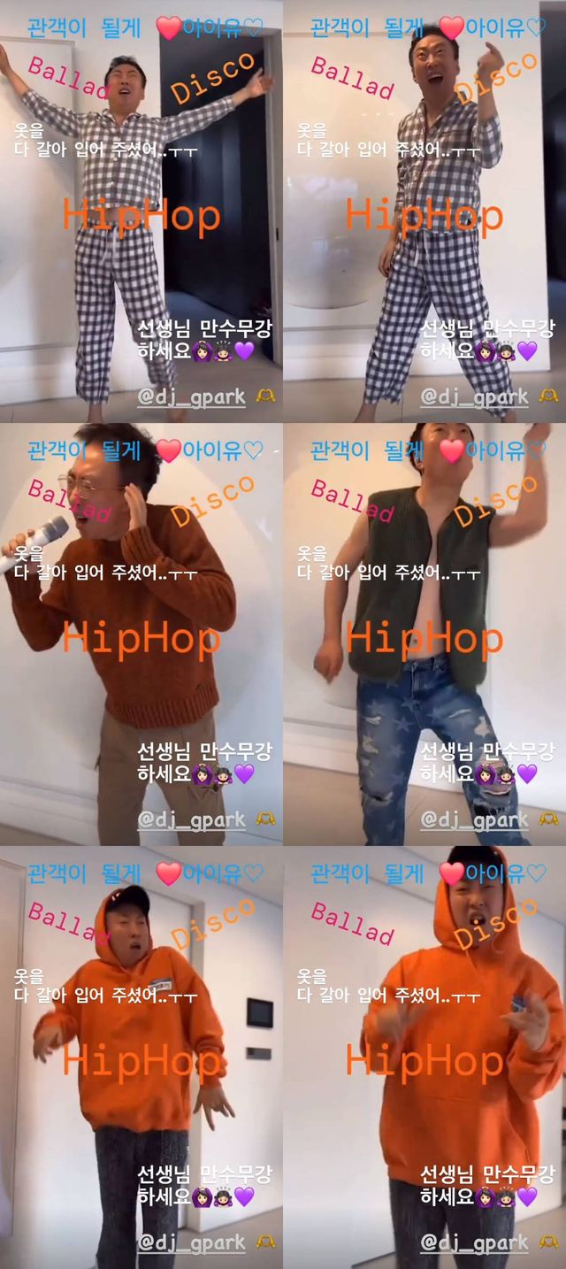 아이유는 해당 동영상을 공유하며 "옷을 다 갈아입어주셨어..ㅜㅜ 선생님 만수무강 하세요"라고 반응하며, 박명수를 태그해 훈훈함을 안겼다.