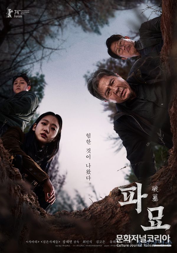 땅을 찾는 풍수사 ‘상덕’(최민식), 원혼을 달래는 무당 ‘화림’(김고은), 예를 갖추는 장의사 ‘영근’(유해진) 그리고 경문을 외는 무당 ‘봉길’(이도현)이 땅을 내려다보는 모습 사이로 보이는 한반도 형상의 하늘이 눈길을 끈다.