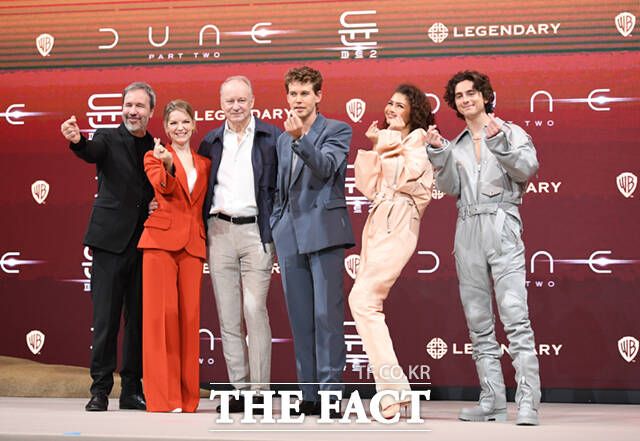 드니 빌뇌브 감독과 제작자 타냐 라푸앵트, 배우 스텔란 스카스가드, 오스틴 버틀러, 젠데이아 콜먼, 티모시 샬라메(왼쪽부터)가 뭉친 '듄: 파트2'가 지난 1일 북미를 시작으로 여러 국가에서 개봉함과 동시에 박스오피스 1위를 석권했다. /이새롬 기자