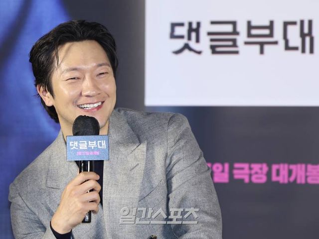 손석구는 4일 오전 서울 광진구 롯데시네마 건대입구에서 열린 영화 ‘댓글부대’ 제작 보고회에서 자신의 앞에 자리한 취재진을 보며 “사실 굉장히 부담스럽다. 기자들 앞에서 기자 연기를 했다고 얘기를 하는 게 부담”이라고 털어놓으며 웃음을 보였다.