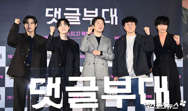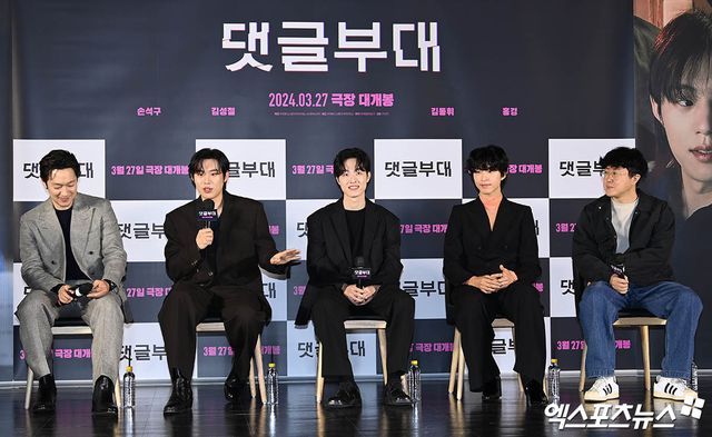 4일 오전 서울 광진구 롯데시네마 건대입구에서 영화 '댓글부대'(감독 안국진)의 제작보고회가 진행됐다. 현장에는 배우 손석구, 김성철, 김동휘, 홍경과 안국진 감독이 참석했다.