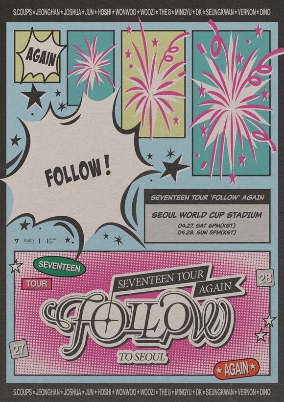 배급사 CJ 4DPLEX는 15일 "세븐틴이 오는 4월 27일부터 28일 양일간 서울 마포구 서울월드컵경기장에서 개최하는 'SEVENTEEN TOUR 'FOLLOW' AGAIN TO SEOUL(세븐틴 투어 '팔로우' 어게인 투 서울)' 앙코르 공연 실황을 영화로 제작한다"고 밝혔다.