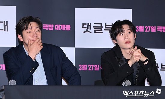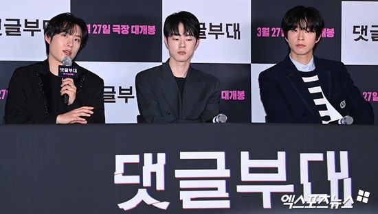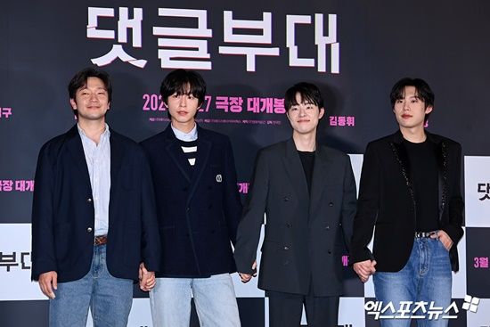 15일 오후 서울 용산구 CGV용산아이파크몰에서 영화 '댓글부대'(감독 안국진)언론시사회가 열렸다. 이 자리에는 안국진 감독과 배우 손석구, 김성철, 김동휘, 홍경이 참석했다.