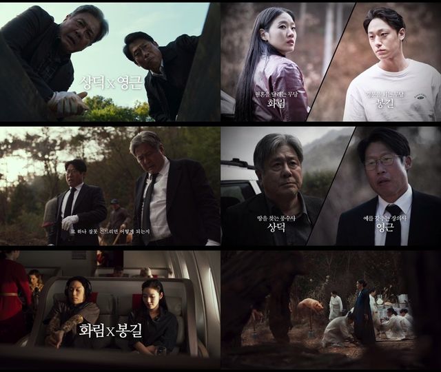 영상은 파묘를 위해 모인 네 인물의 케미를 보여주며 눈길을 끈다. 먼저, 함께 일한 지 수십년이 된 풍수사 상덕(최민식 분)과 장의사 영근(유해진 분)은 말하지 않아도 통하는 베테랑 케미를 선보이며 프로다운 면모를 자랑한다.