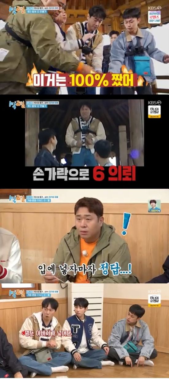 31일 방송된 KBS 2TV '1박 2일 시즌4'에서는 연정훈, 김종민, 문세윤, 딘딘, 나인우, 유선호가 경북 고령으로 떠나는 모습이 전파를 탔다.