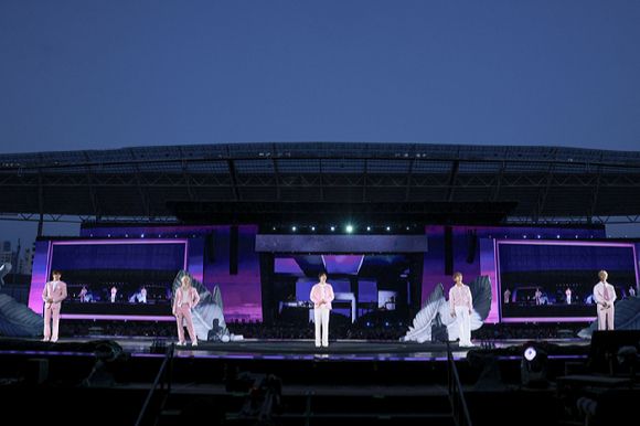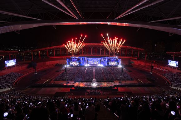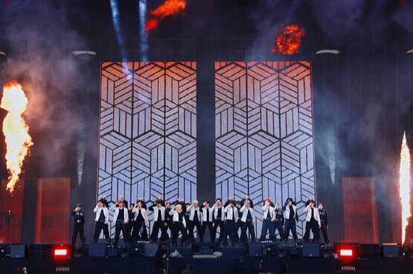 이날 콘서트는 스타디움 공연장에서 열린 만큼 대형 LED와 플라잉 스테이지, 무빙 스테이가 설치돼 압도적인 스케일을 자랑했다. 또 화려한 불꽃놀이와 드론쇼가 펼쳐져 스타디움 경기장을 관객들의 뜨거운 열기로 가득 채웠다.