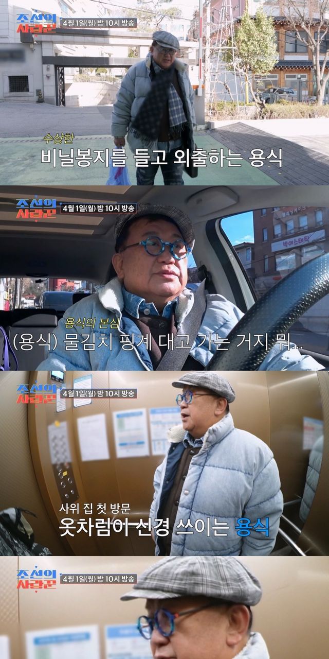 4월 1일(월) 방송될 ‘조선의 사랑꾼’에서는 이른 아침부터 수상한 비닐봉지를 들고 외출하는 이용식의 모습이 포착됐다. 집에서 챙겨온 물김치를 차에 소중히 실은 이용식은 “원혁이네 집에 간다. (수민 엄마가) 물김치를 했다고 갖다주래서…얘네들 어떻게 사나 궁금하기도 하고”라며 서둘러 원혁의 집으로 출발했다.