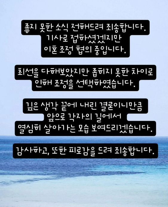 최병길 PD와 이혼 소식을 전한 서유리 / 서유리 인스타그램