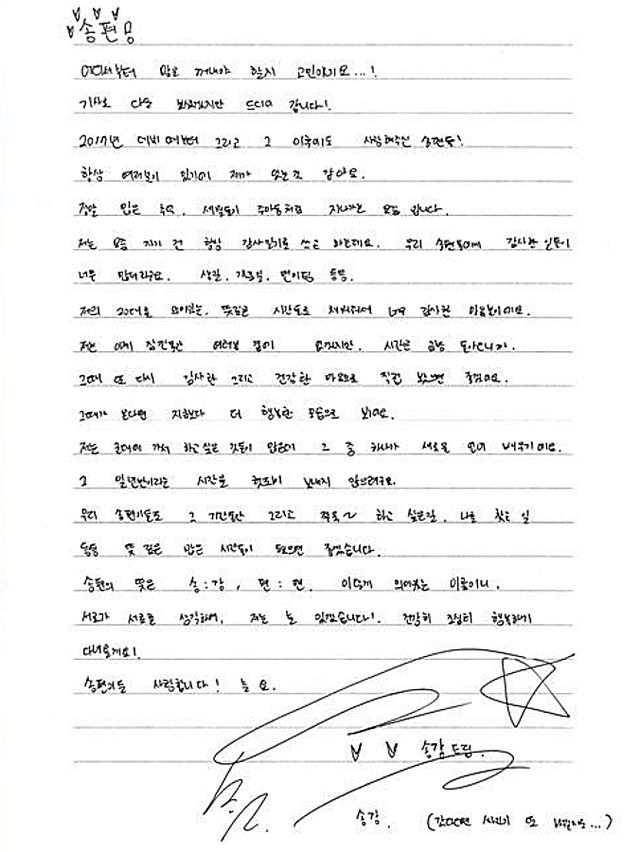 송강이 1일 팬카페에 올린 자필 편지 / 송강 공식 팬카페