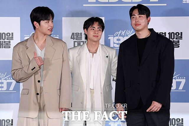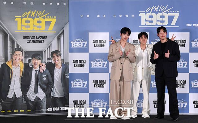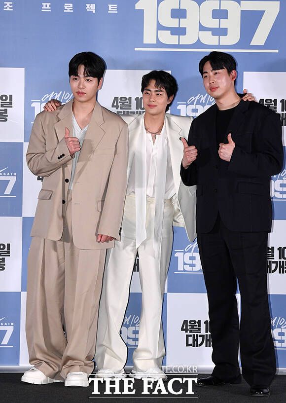[더팩트ㅣ서예원 기자] 배우 구준회와 조병규, 최희승(왼쪽부터)가 1일 오후 서울 용산구 CGV 용산 아이파크몰에서 열린 영화 '어게인 1997' 시사회 및 기자간담회에 참석해 포즈를 취하고 있다.