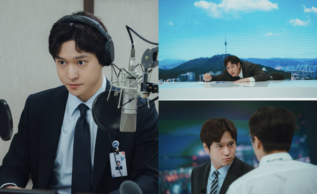 ‘뇌섹남’, ‘금수저’, ‘고스펙’은 송기백의 수식어다. 게다가 아나운서 8년 차, 메인 뉴스 앵커 발탁을 목전에 뒀으니 앞으로도 탄탄대로를 걸을 것만 같다. 그런데 오늘(1일) 공개된 스틸컷은 이런 설명과는 다른 반전 이미지를 담고 있다. FM 아나운서답게 머리부터 발끝까지 완벽한 수트핏에 눈에 띄는 비주얼이긴 하다. 하지만 뉴스데스크에 바짝 엎드려 어쩔 줄 모르고 당황한 모습이나, 누군가를 향해 눈을 부라리는 표정이 왠지 모르게 웃음을 유발한다.