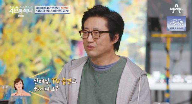 1일 방송된 채널A '절친 토큐멘터리 4인용 식탁'에는 배우에서 화가로 변신한 박신양이 작업실에 개그맨 이진호, 그룹 젝스키스 출신 배우 장수원, 아나운서 조수빈, 미술사학자 안현배를 초대했다.