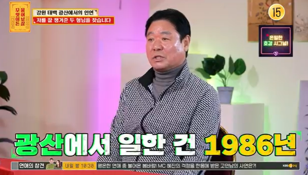 그러면서 “형님들이 나보다 4~5살 많다”며 “1989년 초에 석탄 산업 합리화 정책으로 전체 광산이 없어졌는데 일자리를 잃고 수원으로 가기로 했다”며 “형님들이 짐을 다 싸주고 태백에서 수원까지 같이 가줬다. 그 눈밭 길에 같이 와서 이삿짐을 함께 옮겨줬다”고 고마워 했다.