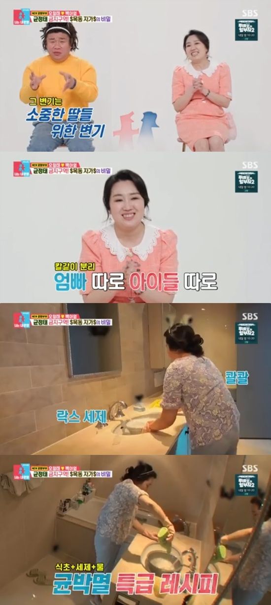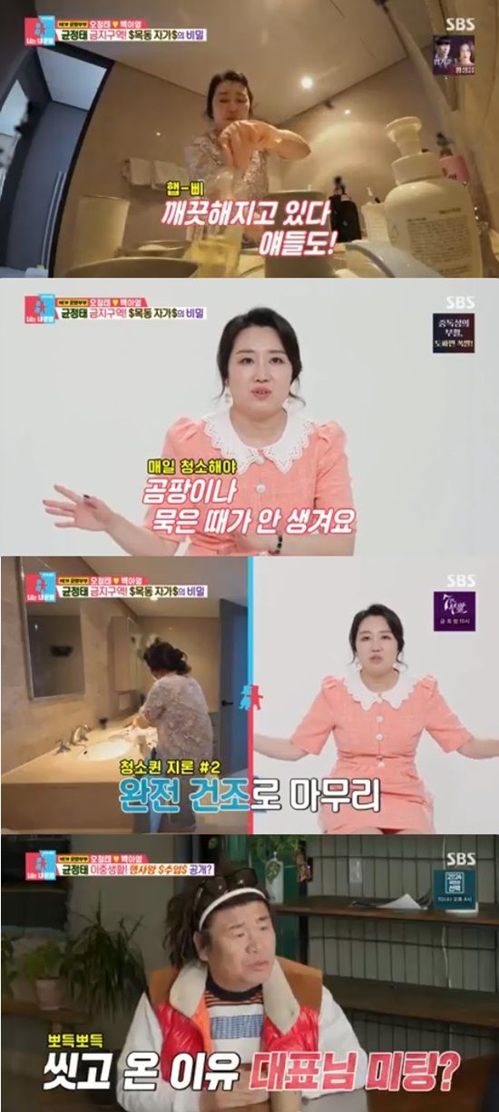 백아영은 "욕실청소는 자주 해야 한다. 저는 매일매일 한다. 가볍게 하는 거다. 그래야 곰팡이나 묵은 때가 잘 안 생긴다. 그때그때 샤워하듯이 하는 게 중요하다. 그리고 말리는 게 중요하다. 물이 고이면 세균이 번식하니까"라고 욕실청소 노하우를 전했다.