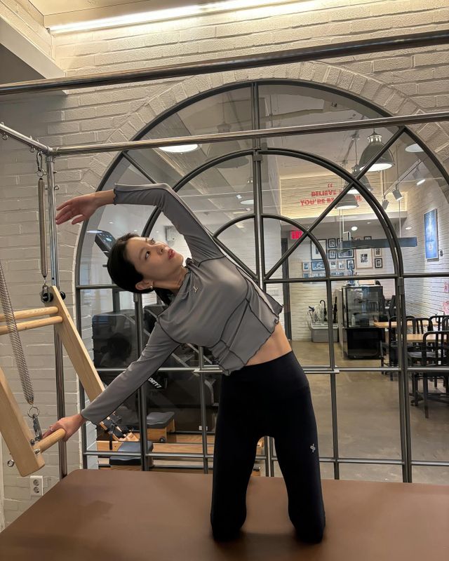 공개된 사진 속 이윤지는 운동복을 입고 필라테스에 열중하고 있다.