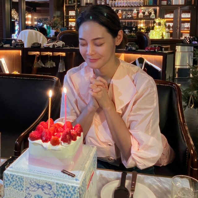 공개된 사진 속 안현모는 생일 케이크 초에 불을 붙인 채 두 손을 모으고 생일을 만끽하고 있다.