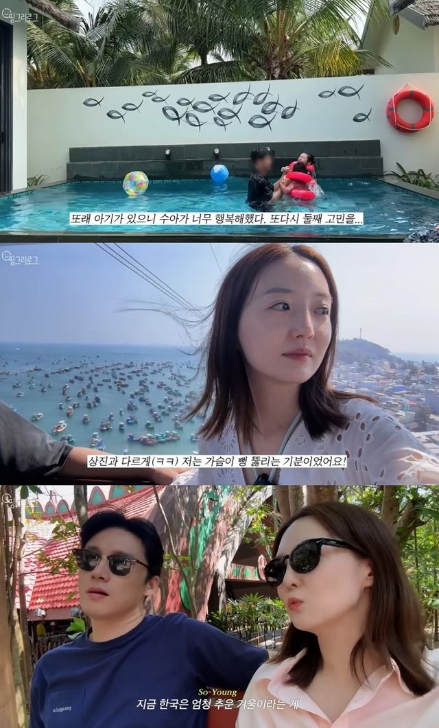 공개된 영상에서 김소영은 남편 오상진, 딸, 그리고 친정 식구들과 함께 베트남 여행에 나섰다.