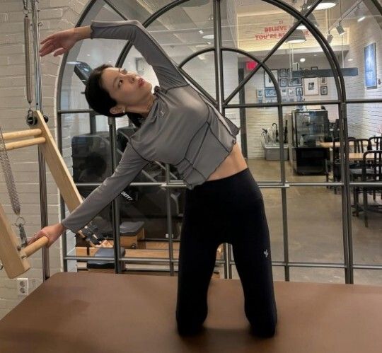 공개된 사진에는 운동에 몰두하고 있는 이윤지의 모습이 담겼다. 살짝 드러난 초콜릿 복근이 감탄을 자아낸다.