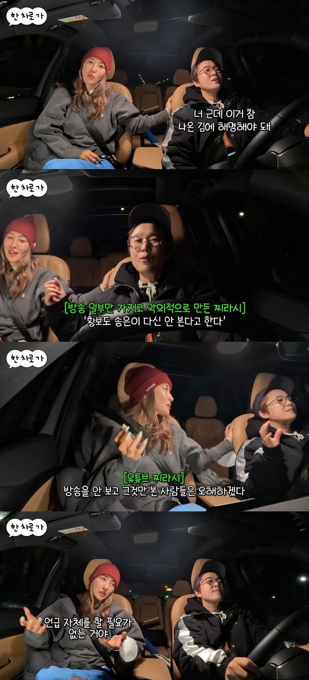 이어 "그 에피소드에 너랑 나랑 '비디오스타' 나가서 했던 이야기가 있더라. '황보도 송은이 다신 안 본다고 한다'라는 식으로 (악의적으로 '비디오스타' 내용을 짜집기를 해) 사이버 렉카들이 영상을 올렸더라"라고 밝혔다.