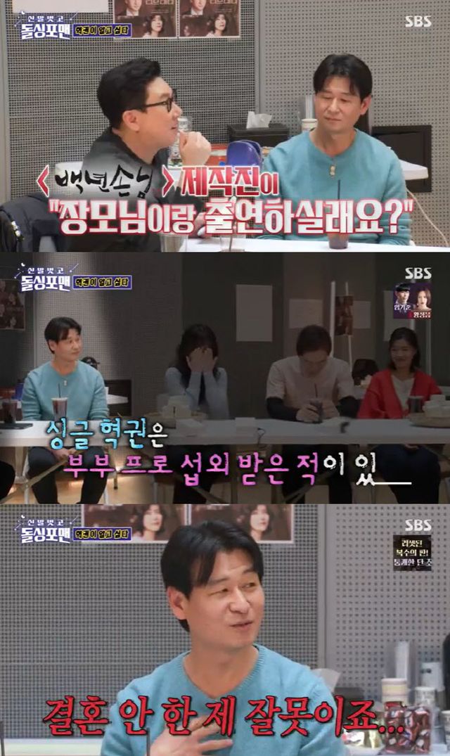 이상민은 “박혁권 씨가 장모님이랑 같이 출연해달라고, ‘백년손님’ 제작진이 출연을 제안 받았다”고 또 하나의 에피소드를 공개했다. 이 말에 박혁권은 “결혼 안 한 제가 잘못이다”고 자책해 웃음을 안겼다.