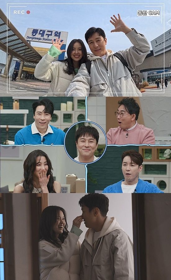 이날 김동완과 서윤아는 커플룩을 맞춰 입은 채, 기차를 타고 대구로 향한다.