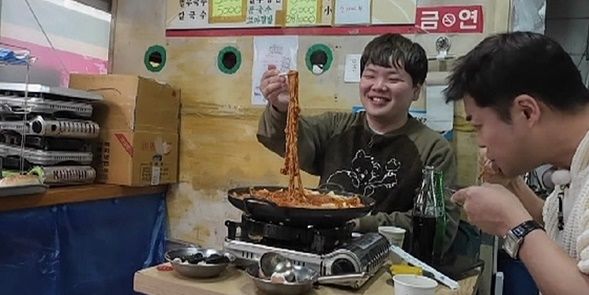잠시 후, 두 사람은 토핑 듬뿍 담은 옛날식 즉석 떡볶이를 영접해 먹방을 펼친다.