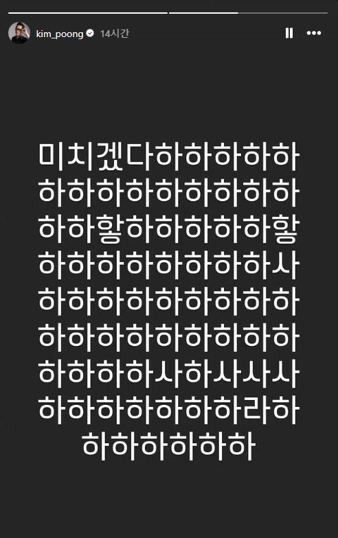 웹툰 작가 김풍은 지난 2일 자신의 인스타그램 스토리에 "미치겠다 하하하하"라는 글을 게시했다. 별 다른 설명은 없었지만 누리꾼들은 최근 이슈가 된 배우 송하운의 학교폭력 연루 논란 때문인 것으로 추측했다.