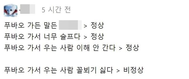 하지만 푸바오 열풍이 다소 이해되지 않는다는 시선도 있다. 물론 개인의 자유이나 이렇게까지 몰려들어 슬퍼해야 할 일이냐는 것이다.