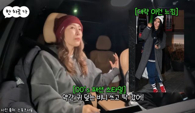 이어 황보는 당시 2000년 초 유행했던 패션이었던 카키색 겉옷, 로우라이즈 조거팬츠, 비니 조합으로 입었다고 회상했다.