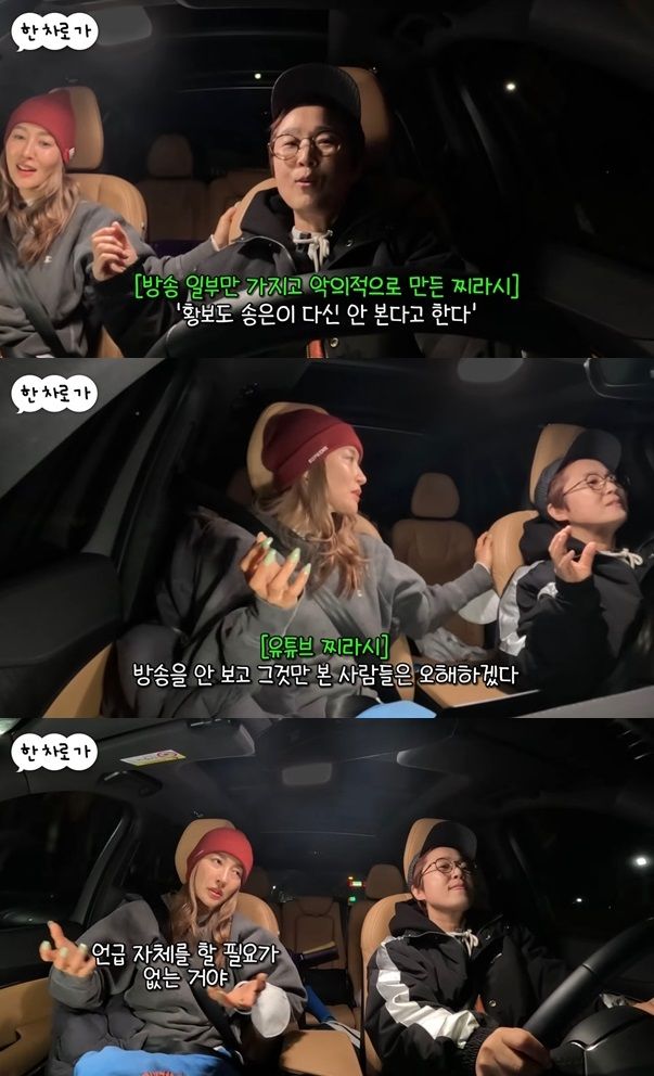 그는 "영상에 너랑 나랑 '비디오스타' 나가서 했던 이야기가 있더라. '황보도 송은이 다신 안 본다고 한다'라는 식으로 사이버 렉카들이 영상을 올렸다"고 토로했다.