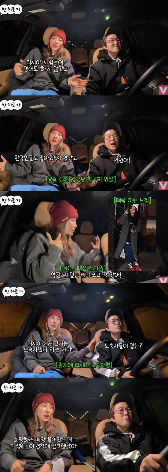 황보는 "그땐 러시아 사람들이 영어도 안 했고 한국 사람도 좋아하지 않았다. 그때 패션 유행이 카키색 옷에 로우라이즈 조거팬츠, 귀를 다 덮는 비니다"라며 "자꾸 러시아 스태프가 연예인이 안 나왔다고 하더라. 난 이미 도착했는데. 그 복장이 러시아에서는 거지 복장, 노숙자라더라. 한국에서는 유행해서 입고간 거였다"라고 당시를 설명했다.