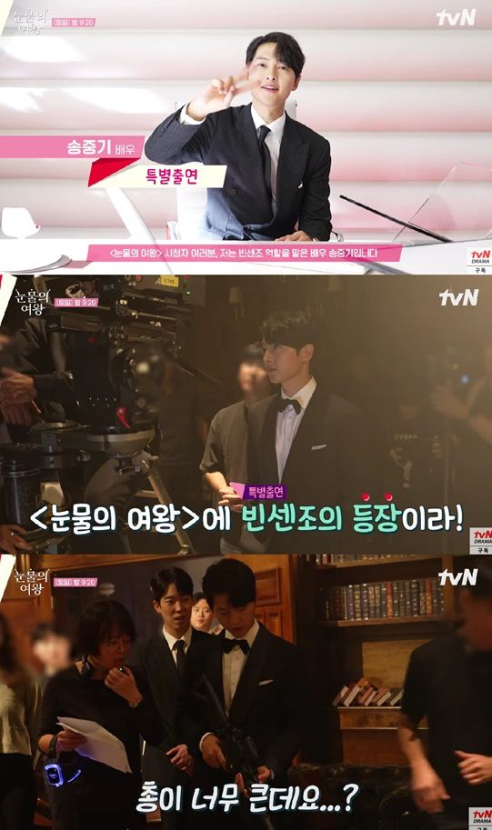 그는 바로 송중기. 송중기는 '눈물의 여왕'에서 '빈센조' 연출을 맡은 김희원 감독과 과거 타 작품에서 만난 김지원, 김수현을 재회했다.