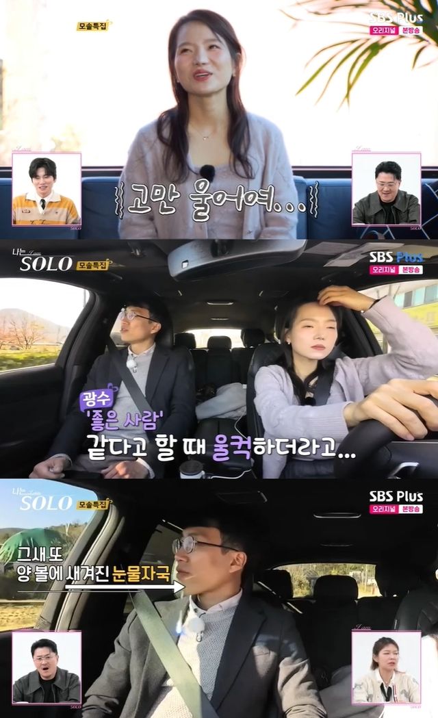데이트를 마치고 돌아오는 차 안에서 광수는 "아까 좋은 사람 같다고 할 때 울컥하더라"라고 떠올렸다.