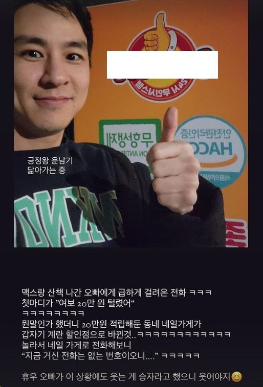 그는 "뭔말인가 했더니 20만 원 적립해둔 동네 네일가게가 갑자기 계란 할인점으로 바뀐 것..ㅋㅋㅋㅋ"이라고 덧붙이며 "놀라서 네일 가게로 전화해보니 '지금 거신 전화는 없는 번호..'"라며 금전적인 피해를 당했음을 밝혔다.